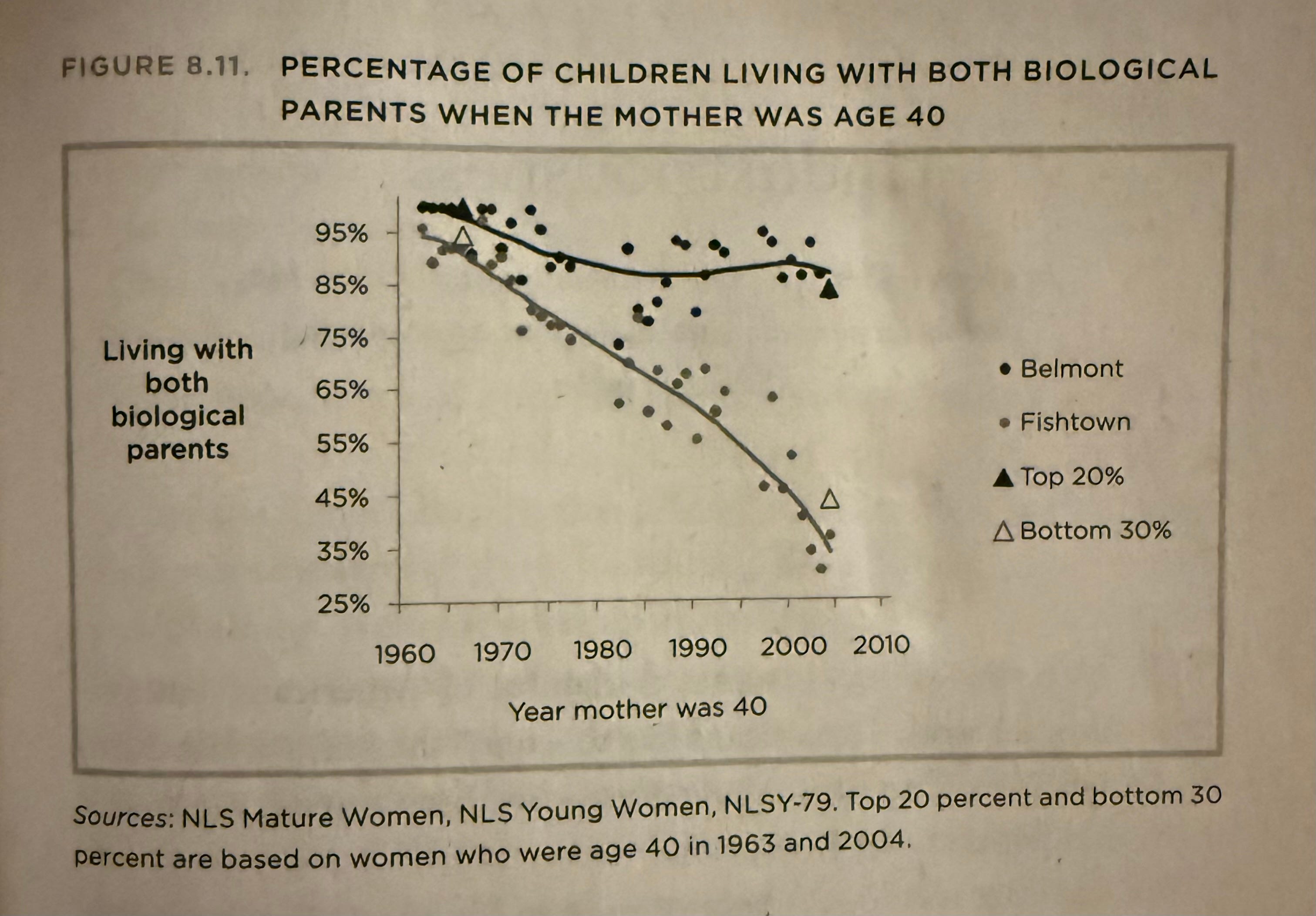 incentivizing marriage will take more than payments I fear, because we have 2-3 generations of kids growing up in broken, dysfunctional homes who do NOT escape that social world. The pessimism is largely internal. I agree that the elite poo-pooing of marriage has led to bad policy oversight, for sure...it's just very hard to change multi-generational trauma without relocating people (which is also Rob's story!)...If you look at the multi-generational trauma of Indian reservations, you can see how hard it is to fix this kind of issue through policy alone.